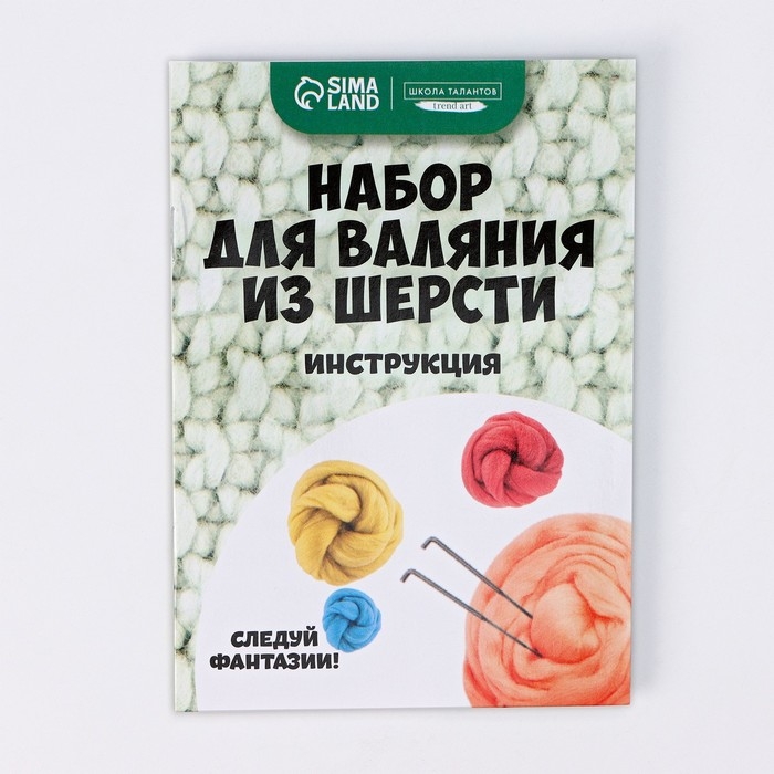 В комплекте для валяния собрано всё самое необходимое для прядения, ткачества, сухого и влажного валяния, создания рисунков на ткани или войлоке, объёмных игрушек, кукол, панно, украшений, декоративных элементов, предметов одежды и аксессуаров.