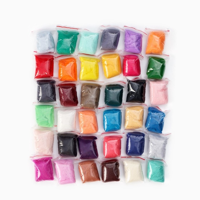 Большой набор для валяния и творчества из 36 цветов и инструментов, позволит даже начинающему любителю фелтинга быстро смастерить красивую игрушку.