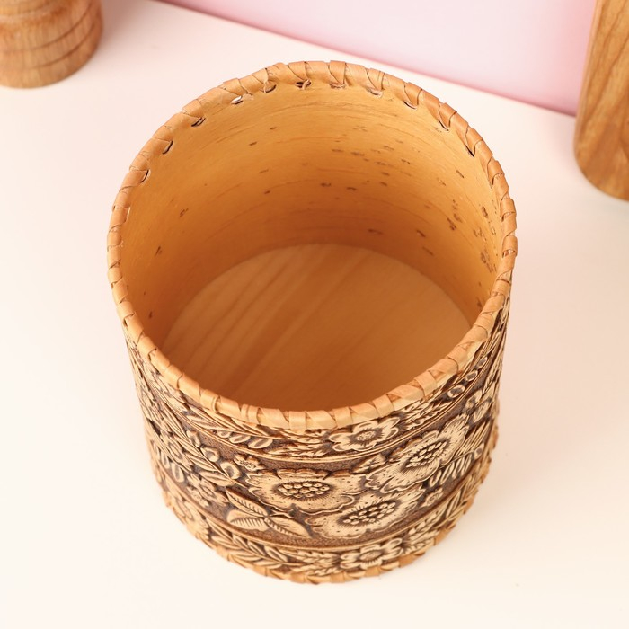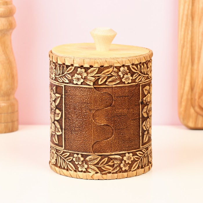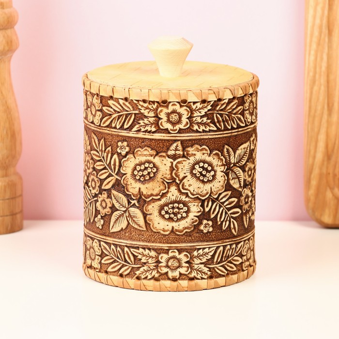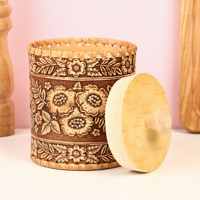 Туес «Лето», шитый, 10×10×14,5 см, береста