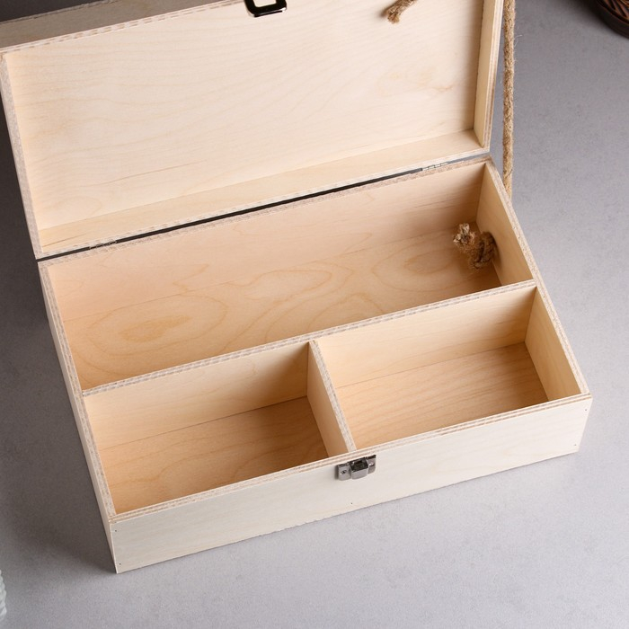 Подарочный ящик 34×21.5×10.5 см деревянный 3 отдела, с закрывающейся крышкой, без покраски