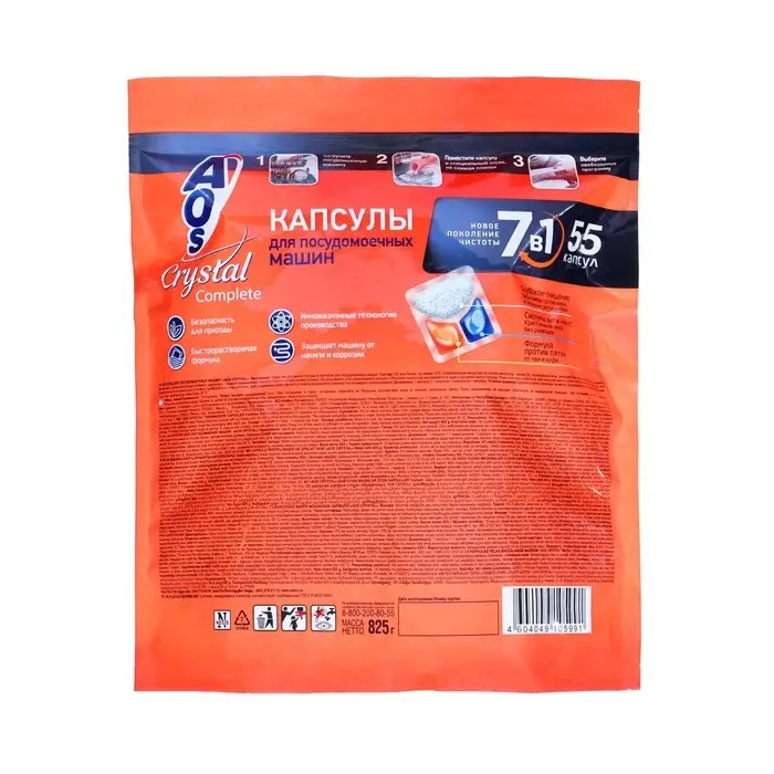 Капсулы для посудомоечных машин AOS "Crystal Complete", 55 шт