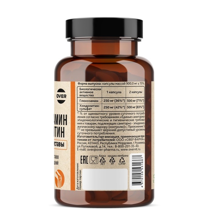 Глюкозамин+Хондроитин OVERvit, 60 капсул