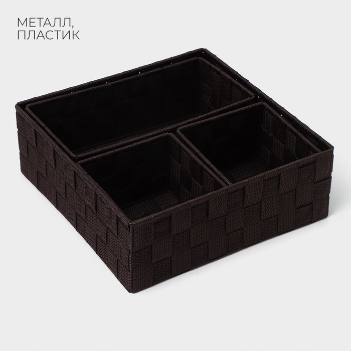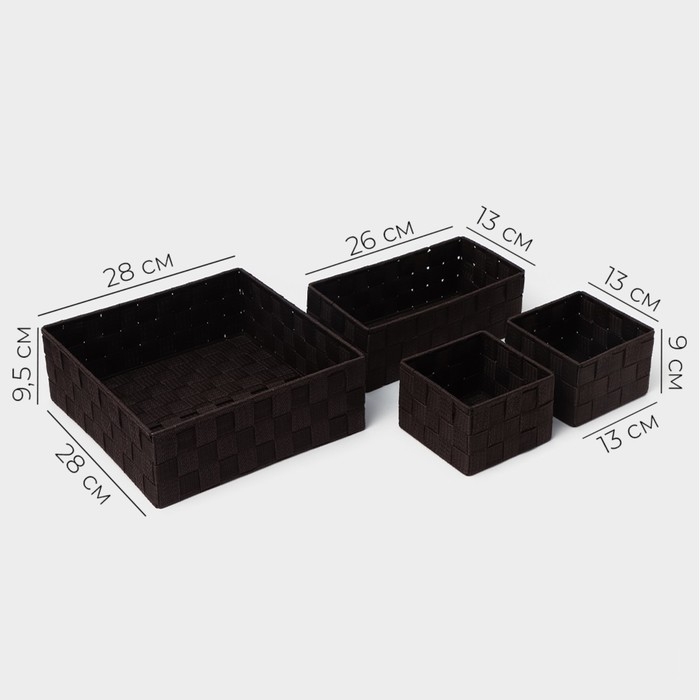 Корзины для хранения LaDо́m, 4 шт, ручное плетение, цвет коричневый