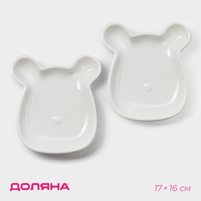 Набор тарелок керамических Доляна «Мишка Отто», 17×16×2,6 см, 2 шт, цвет белый