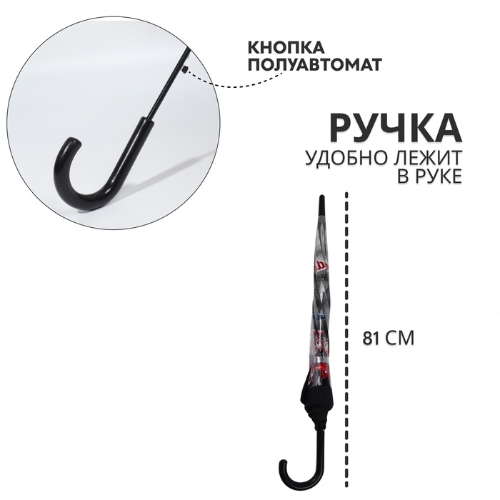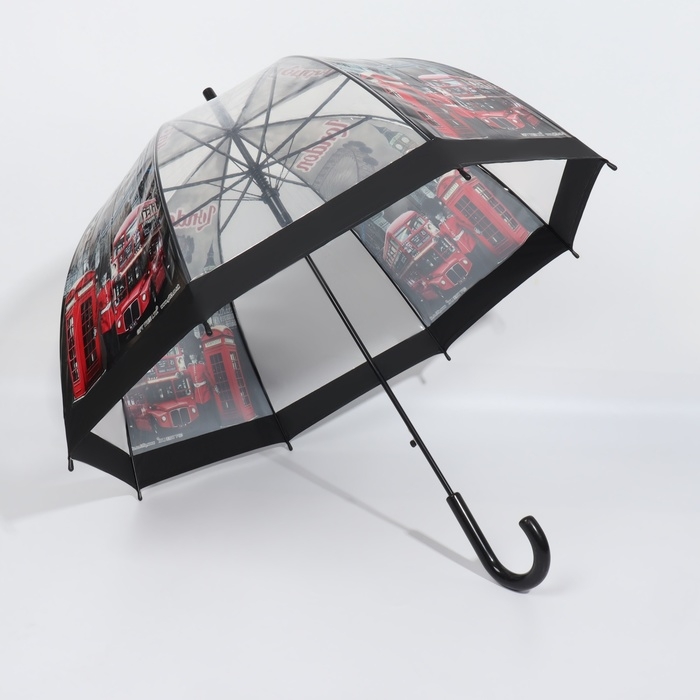 Зонт - трость полуавтоматический «Город», 8 спиц, R = 39/58 см, D = 116 см, цвет прозрачный/чёрный