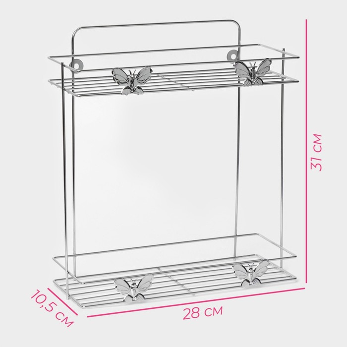 Полка 2-х ярусная Доляна «Бабочки», 28×10,5×31 см