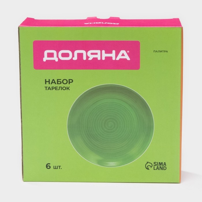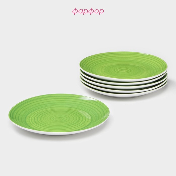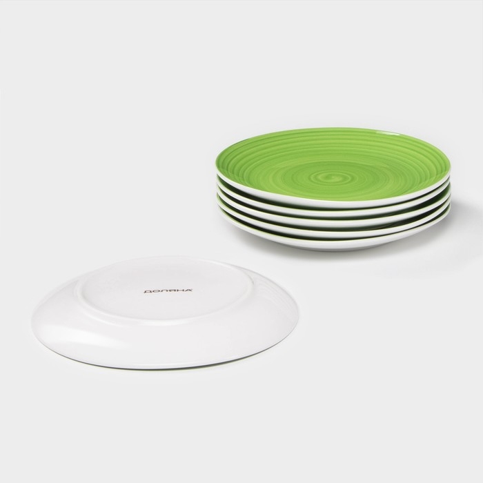 Набор фарфоровых тарелок Доляна «Палитра», 6 предметов: d=19 см, цвет зелёный