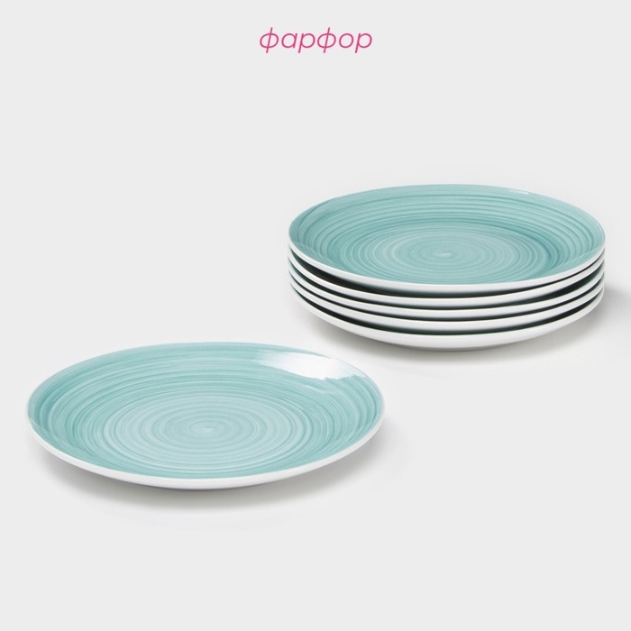Набор фарфоровых тарелок Доляна «Палитра», 6 предметов, d=19 см, цвет бирюзовый