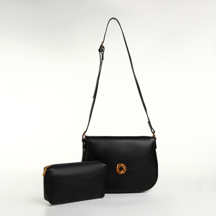 Сумка женская на клапане TEXTURA, средний размер, цвет чёрный