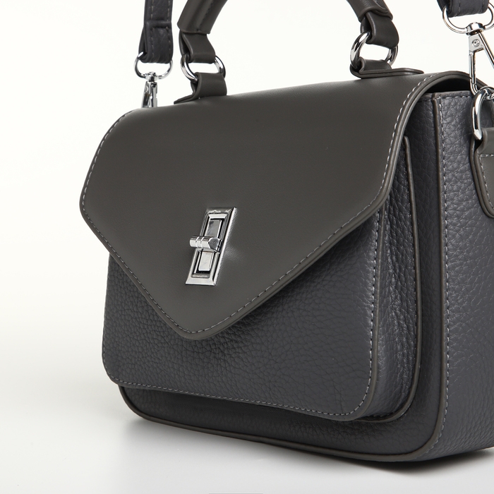 Сумка женская на клапане TEXTURA, маленький размер, цвет тёмно-серый