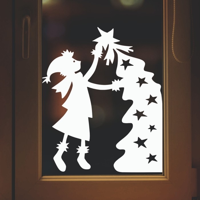 Наклейка декоративная для окон "Гном и елка" 50х60 см
