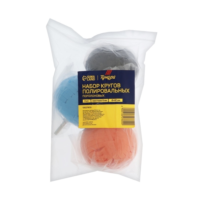 Набор кругов полировальных ТУНДРА, поролоновых, d=80 мм, хвостовик 6 мм, 3 шт.