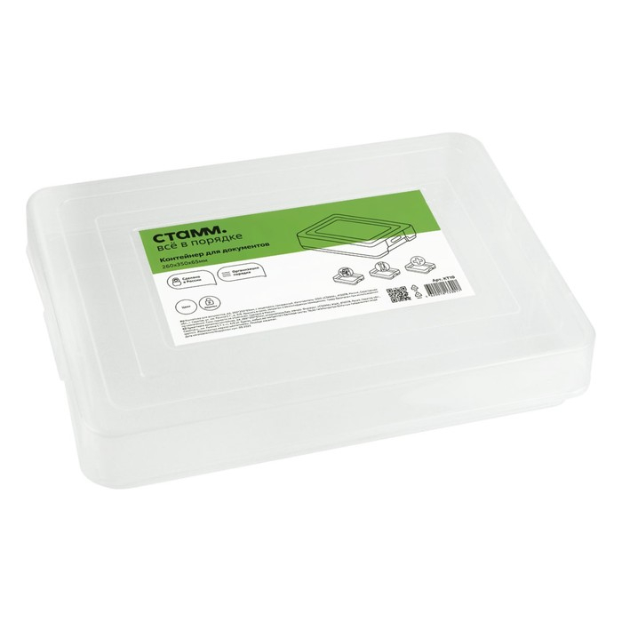 Контейнер для документов Стамм А4, 260 х 350 х 65 мм, пластик, с защелками, прозрачный