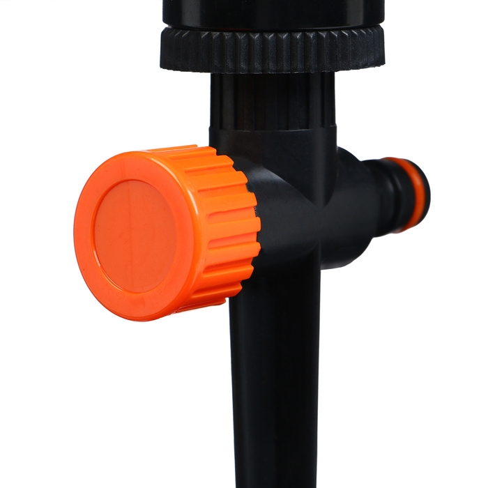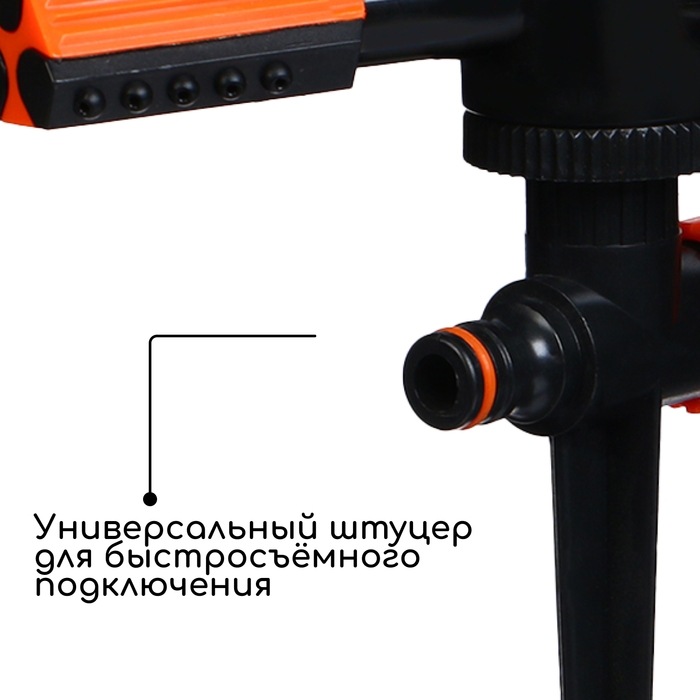 Под давлением воды распыляющая головка начинает вращаться и осуществлять полив.