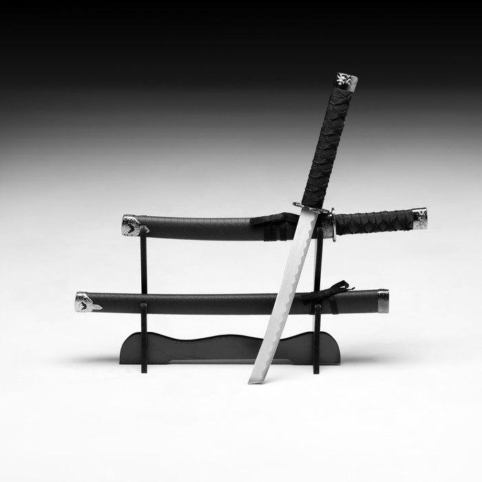 Сув. изделие катаны 2в1 на подставке, ножны кожзам, рептилия, черная 47/70см