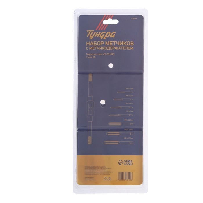 Набор метчиков ТУНДРА, М3 - М12 + метчикодержатель, 8 предметов