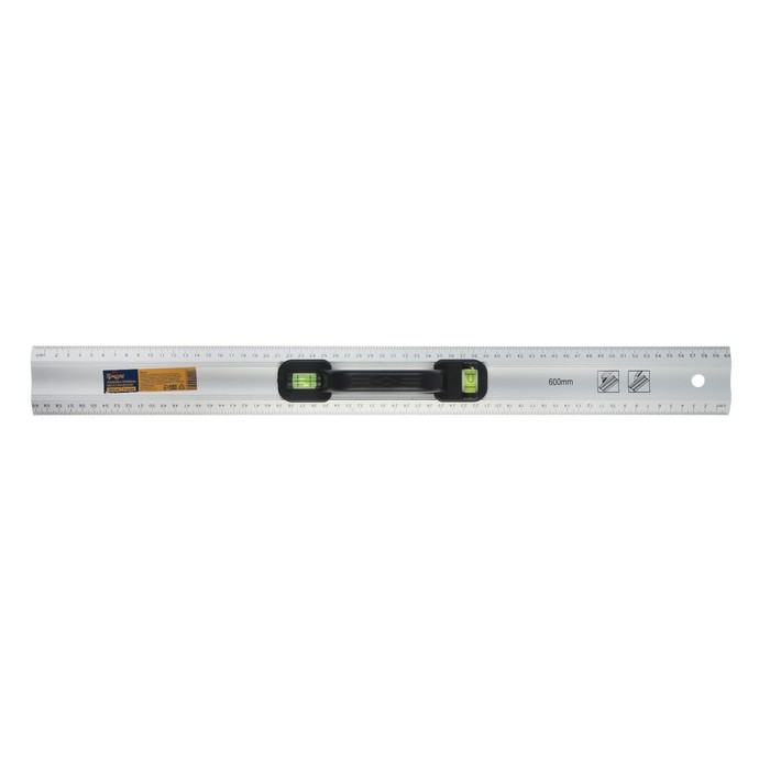 Линейка-уровень ТУНДРА, металлическая, пластиковая ручка, 2 глазка, 600 мм