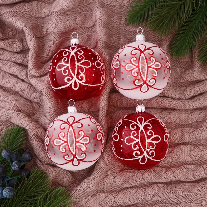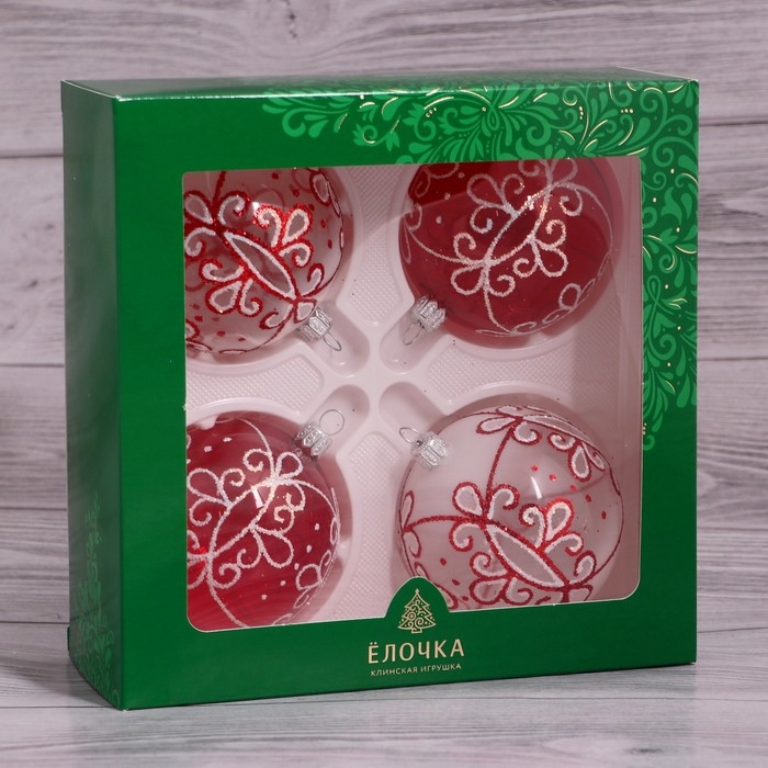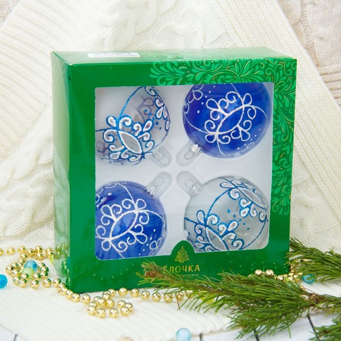 Набор новогодних шаров "Диадема" (набор 4 шт) d-7,5 см