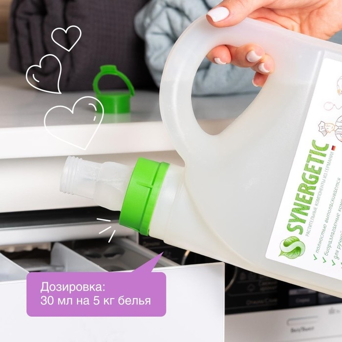 Кондиционер-ополаскиватель для белья Synergetic "Миндальное молочко", биоразлагаемый,гипоаллергенный, 2.75 л