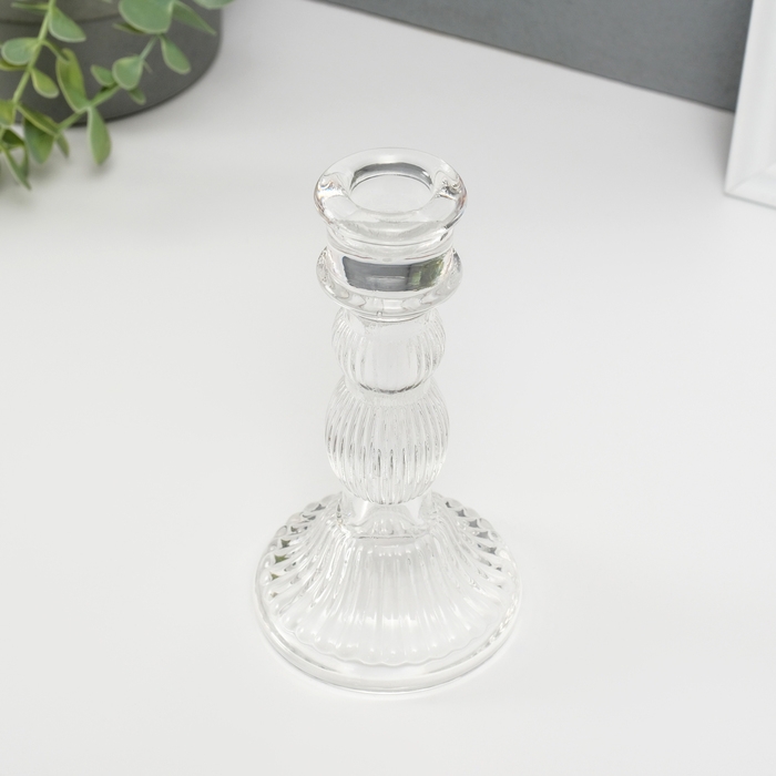Подсвечник стекло на 1 свечу "Колонна с шарами" прозрачный 15,5х8х8 см