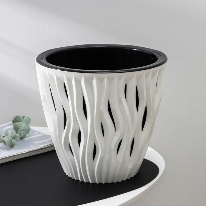 Кашпо для цветов со вставкой «Вдохновение», 7,5 л, цвет белый/чёрный