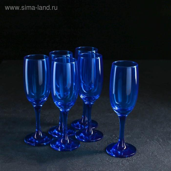 Набор бокалов для шампанского «Радуга», 190 мл, 6 шт, цвет кобальт