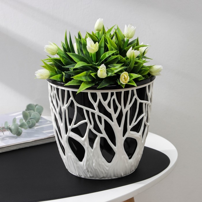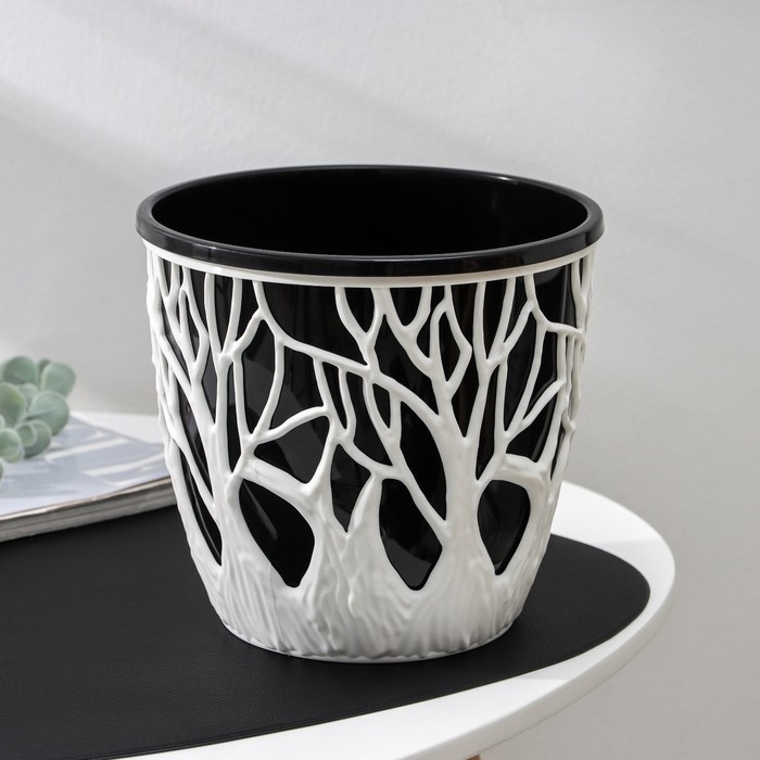 Кашпо для цветов со вставкой «Форест», 3 л, цвет бело-чёрный