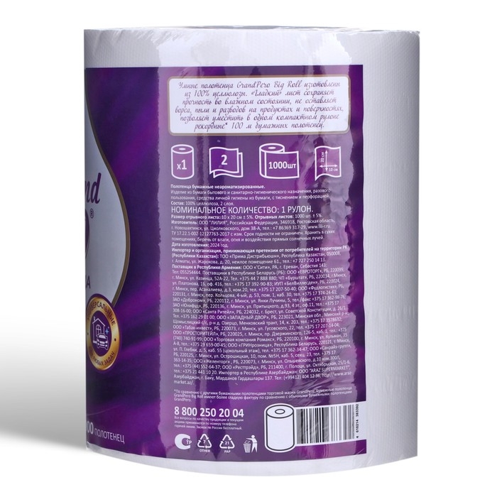 Бумажные полотенца Grand PERO белые, 2 слоя, 1000 листов