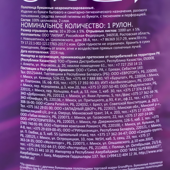Количество слоев: 2. С перфорацией и тиснением.