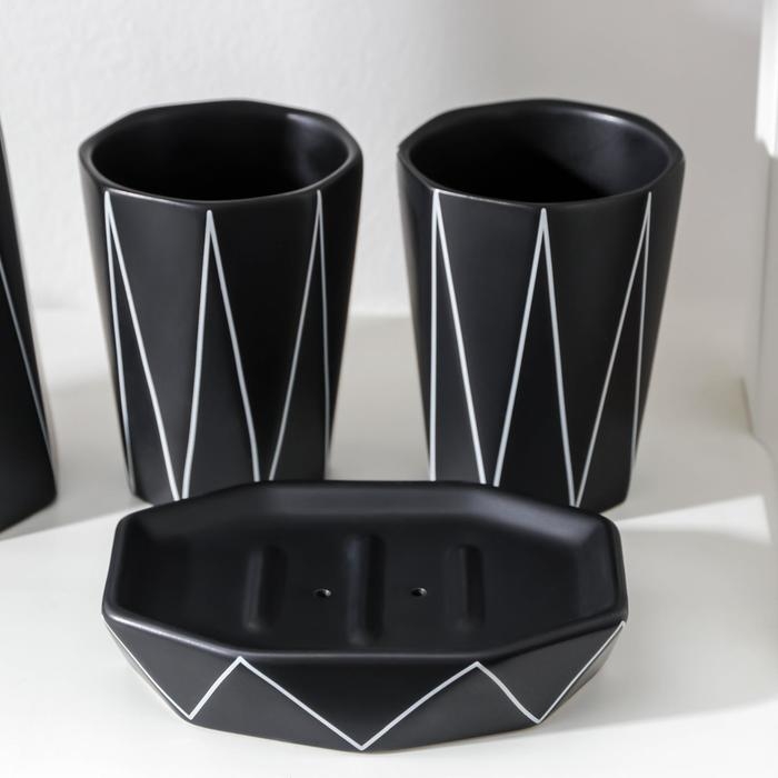 Набор для ванной комнаты «Локо», 4 предмета (дозатор для мыла 280 мл, мыльница, 2 стакана 250 мл), цвет чёрный