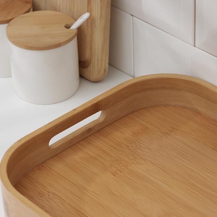 Поднос с ручками Доляна Striata, 40×28×4,5 см, бамбук