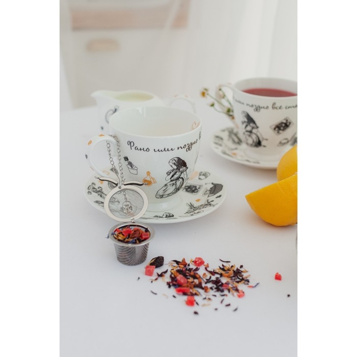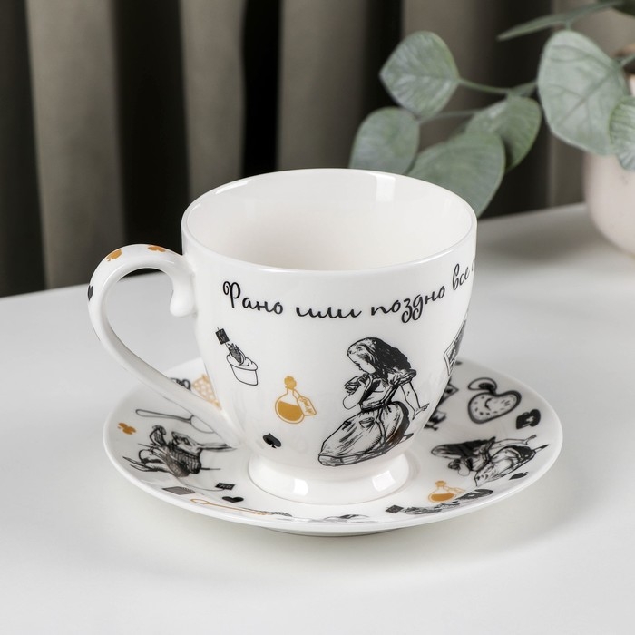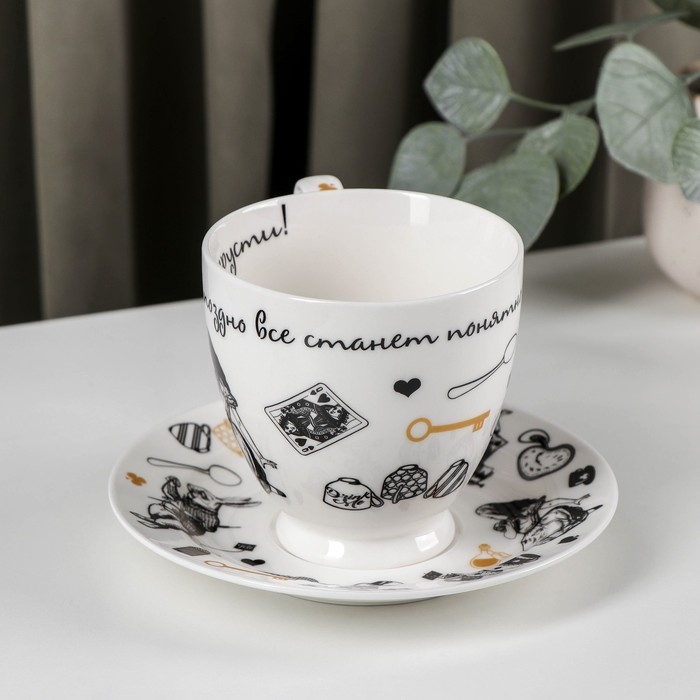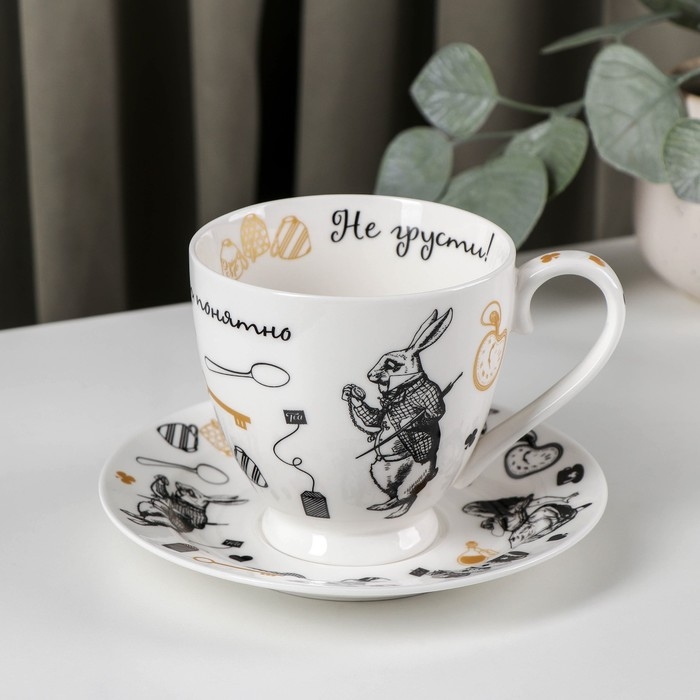 Чайная пара фарфоровая «Безумное чаепитие», 440 мл, блюдце d=17 см