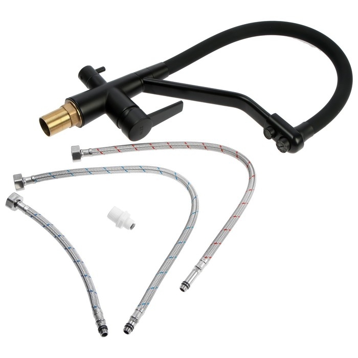 Смеситель для кухни ZEIN Z5972, с выходом для питьевой воды, гибкий излив, латунь, черный