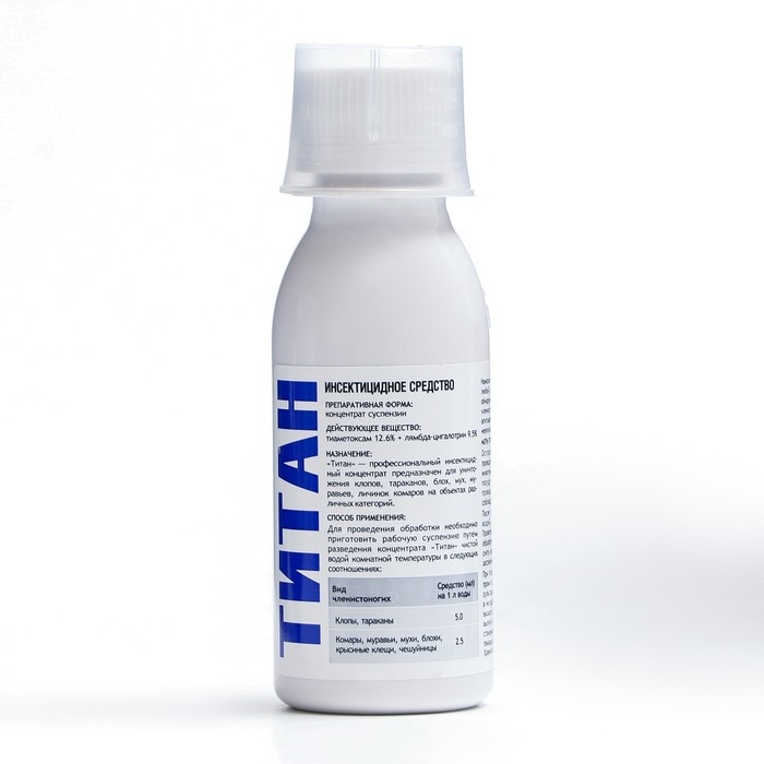 "Титан" - представляет собой суспензионный концентрат, который на сегодняшний день является одним из самых эффективных средств для борьбы с насекомыми. Его можно применять в квартире, производственных, жилых помещениях, детских учреждениях, организациях общественного питания и так далее.