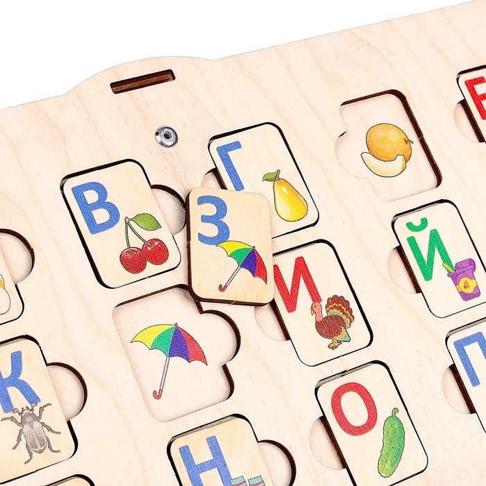 - Деревянные вкладыши с буквами и цифрами.