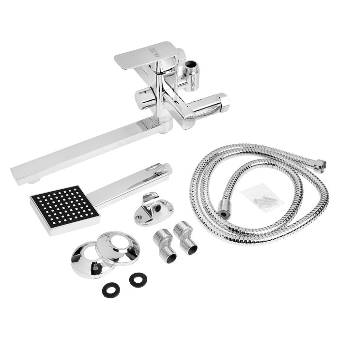 Смеситель для ванны ZEIN Z2078CR, на штангу, душевой набор, картридж 35 мм, латунь, хром