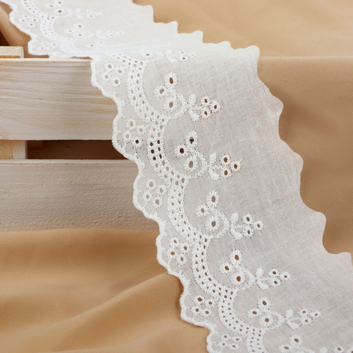 Кружево шитьё, 70 мм × 13 ± 1 м, цвет белый