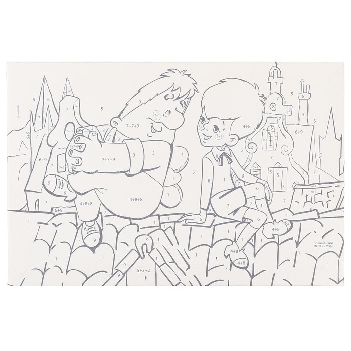 Холст разделён на фрагменты, на каждом из которых указано число, соответствующее цвету, которым нужно закрасить данный участок. В набор входят все необходимые оттенки красок, каждый из которых пронумерован.