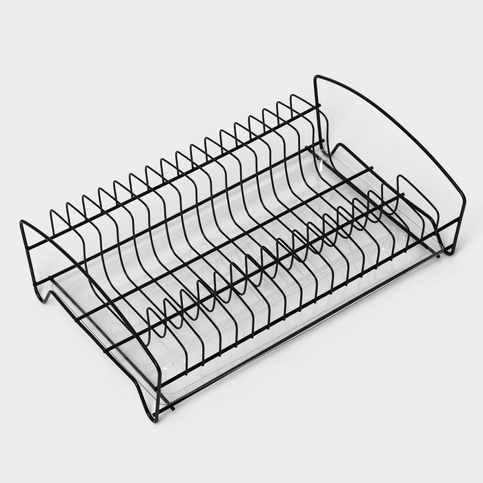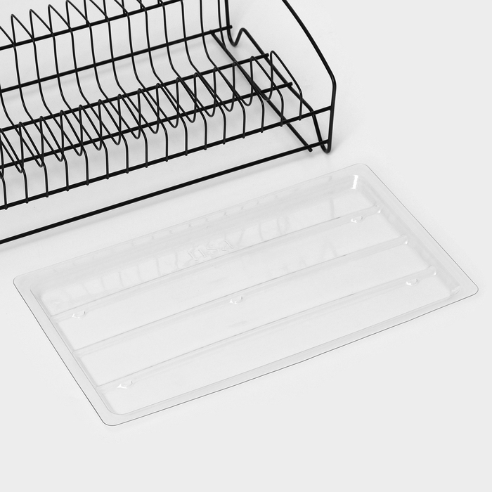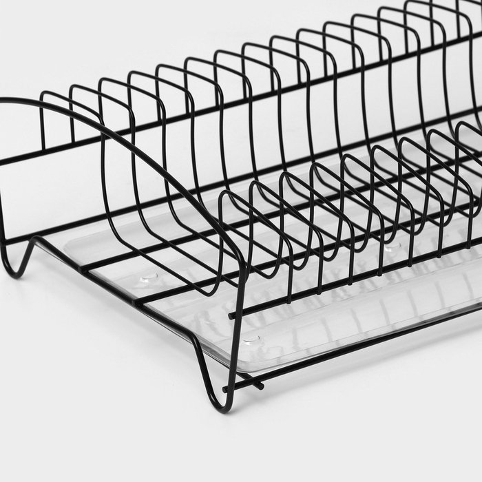 Сушилка для тарелок с поддоном, 38×24,5×12,4 см, цвет чёрный