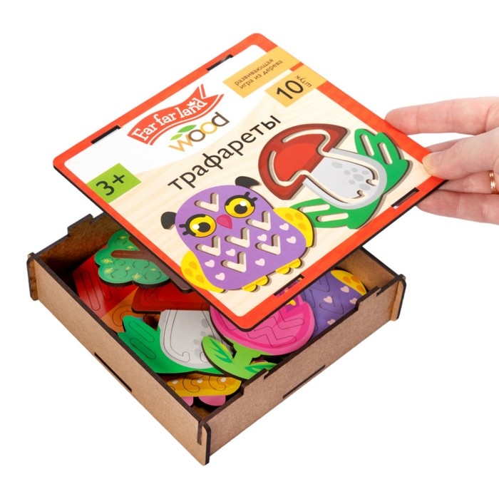 Деревянные трафареты для рисования Far Far Land Wood (10 штук) – это увлекательная и развивающая игра для малышей. Трафареты изготовлены из дерева и хранятся в удобной деревянной коробочке. Толщина всех элементов составляет около 3 мм. Края закруглены и тщательно обработаны.