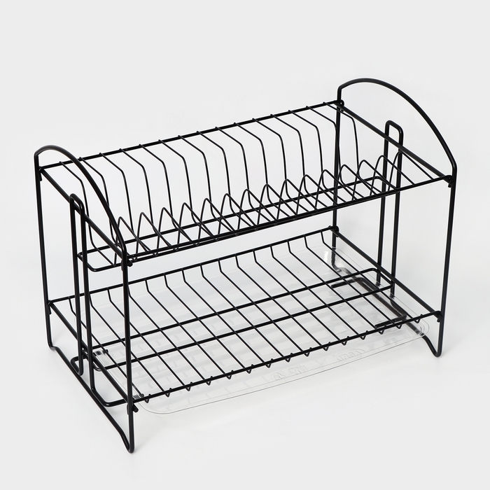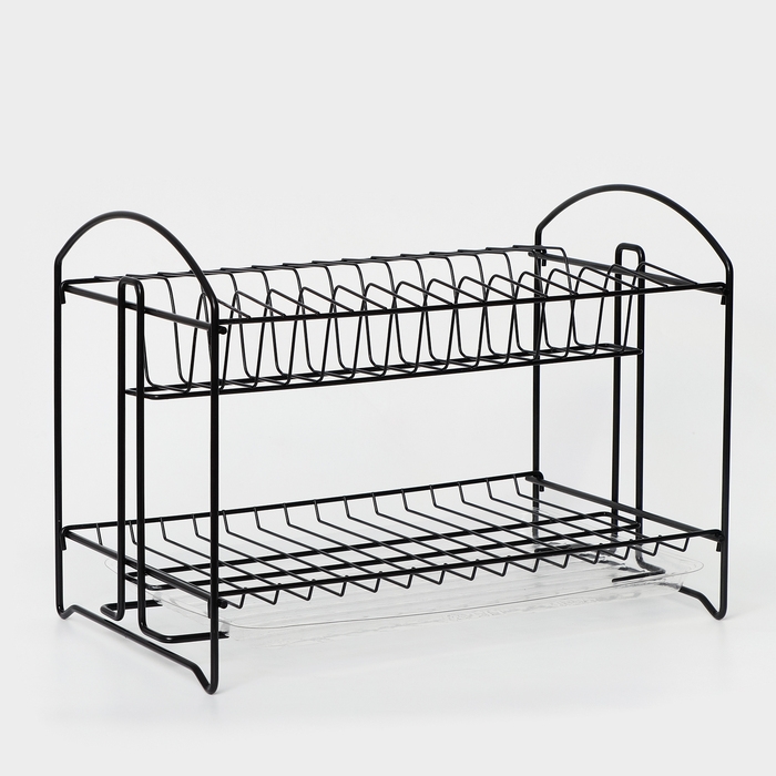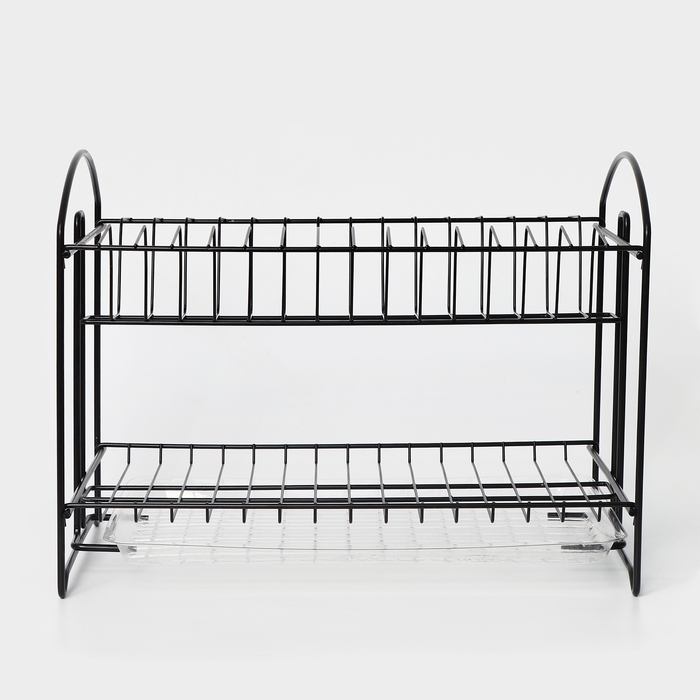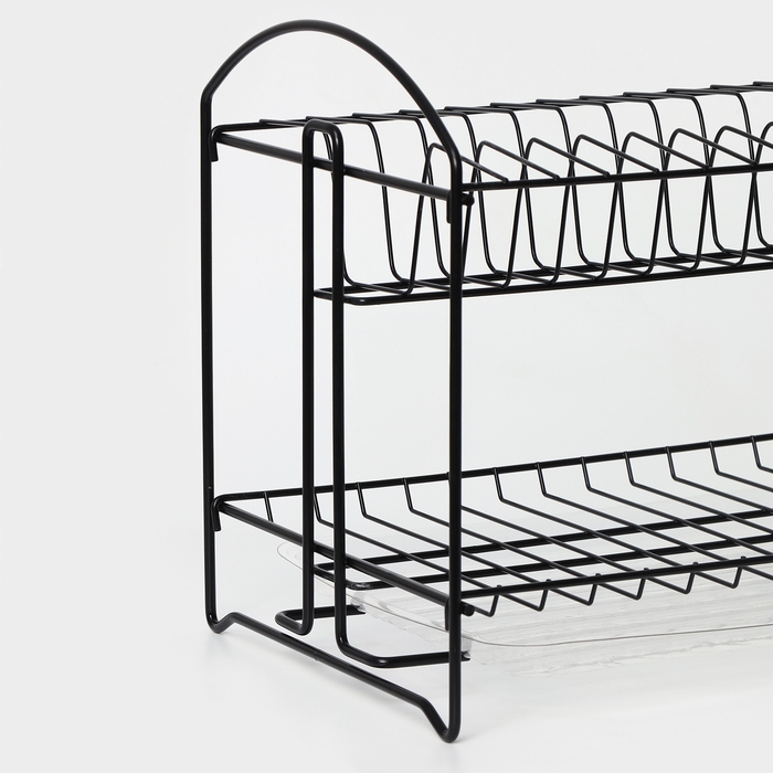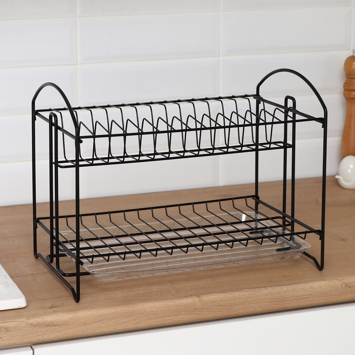 Сушилка для посуды с поддоном 2-х ярусная, разборная, 39,5×24×29,5 см, цвет черный