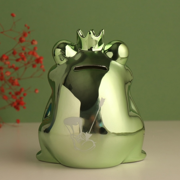 Копилка керамика "Зелёная лягушка - Где мой принц?" 12х10,5х15 см
