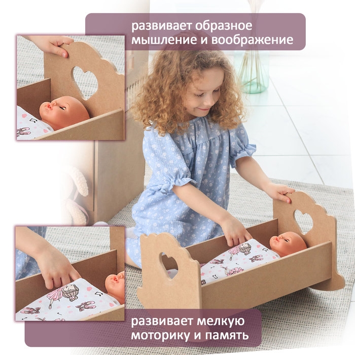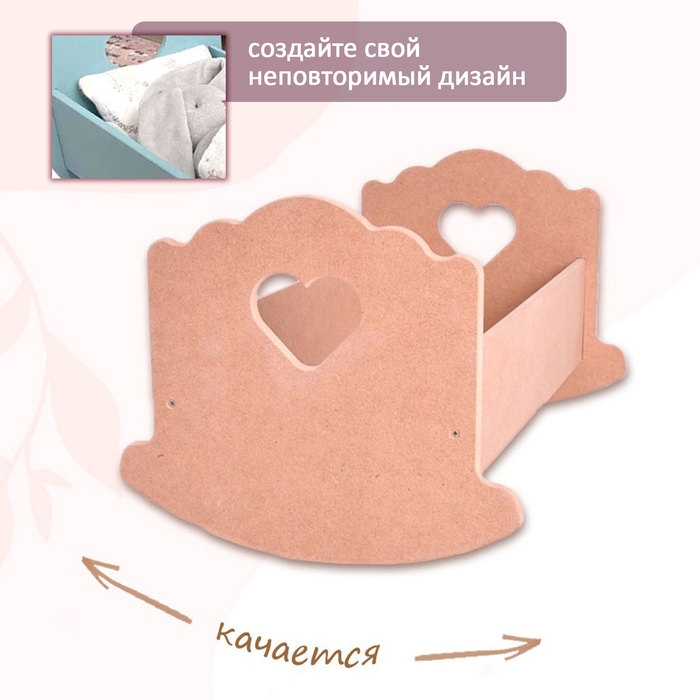 Кроватка-люлька "сердечко" без постельного белья, 43 см, неокрашенный 1058