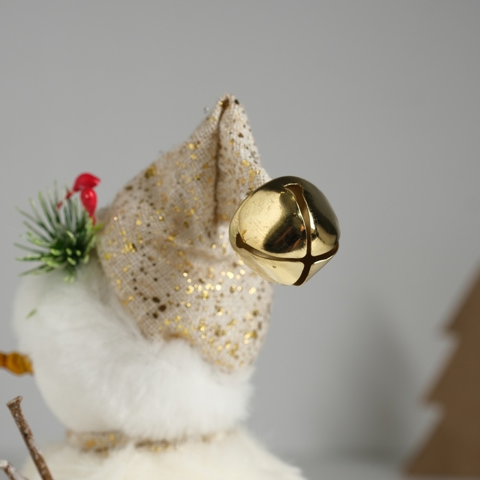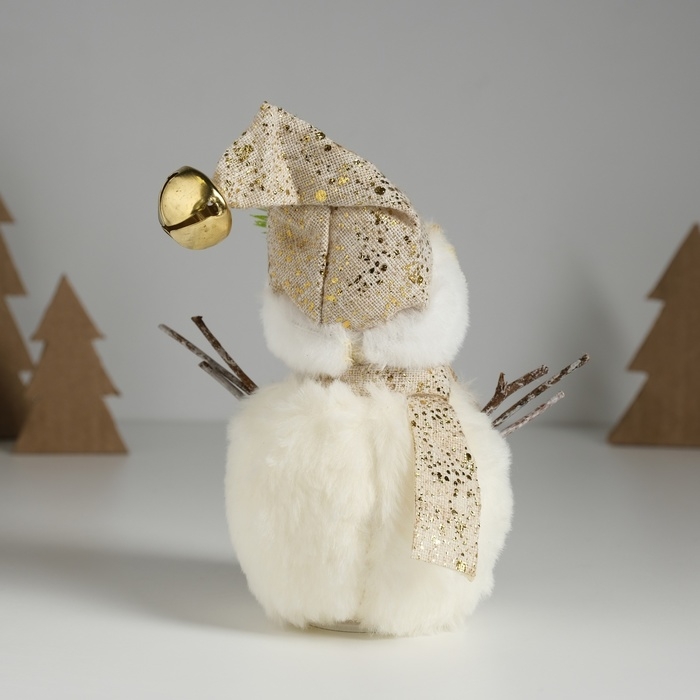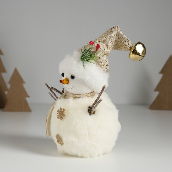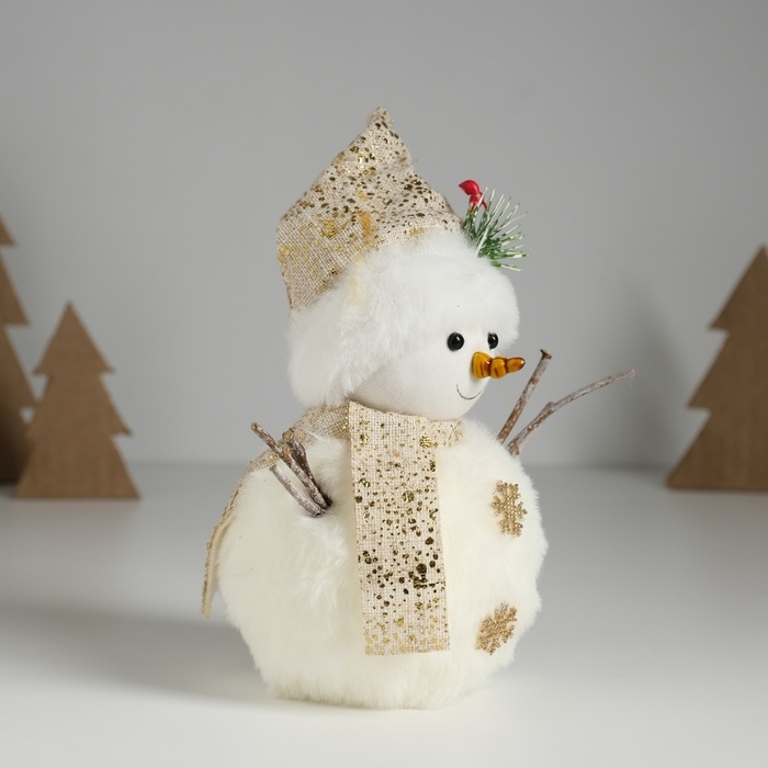Сувенир текстиль "Снеговик меховой с веточкой на шапке" 9,5х9,5х16 см