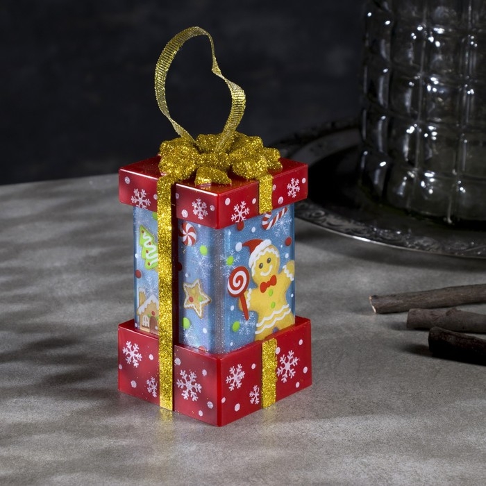 Светодиодная фигура «Красный подарок с пряником» 6.3 × 11.5 × 6.3 см, пластик, батарейки АААх3 (не в комплекте), эффект пламени