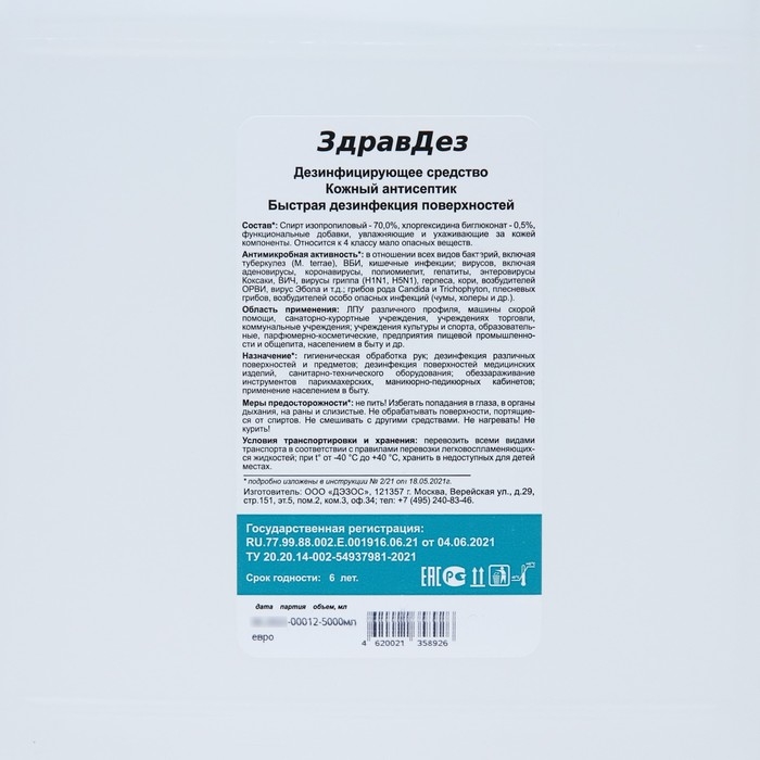 Антисептик "ЗдравДез", 5 л