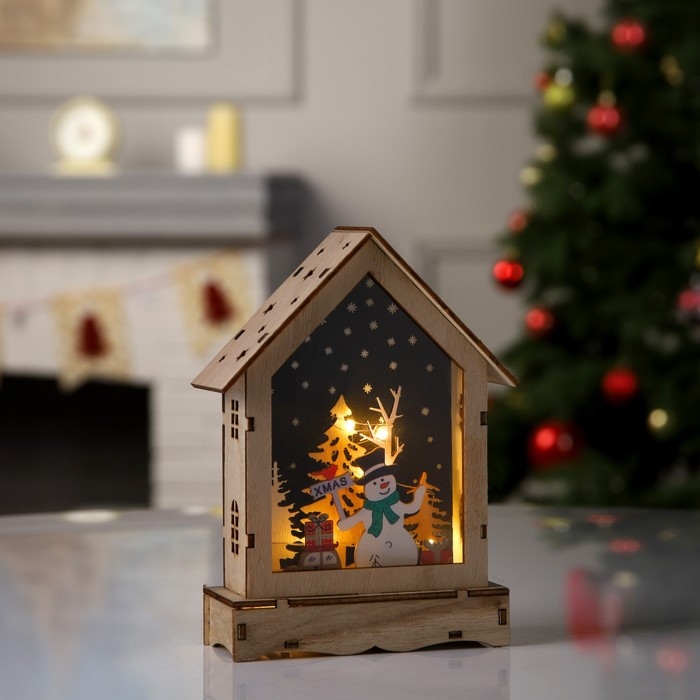 Светодиодная фигура «Домик со Снеговиком» 16 × 11 × 4.5 см, дерево, батарейки АААх2 (не в комплекте), свечение тёплое белое