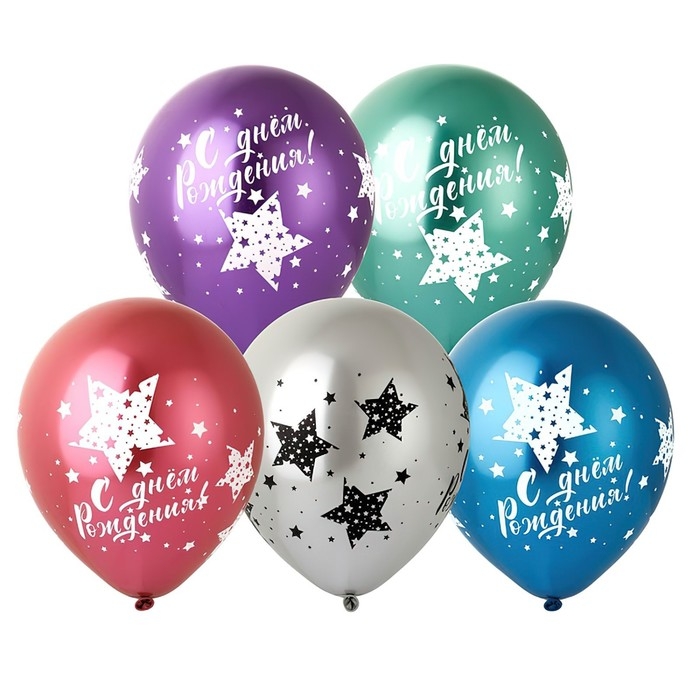 Шар латексный 12" "ДР Мега звёзды", шелкография, хром, набор 25 шт.
