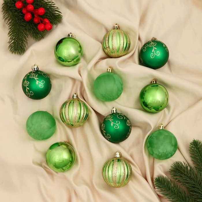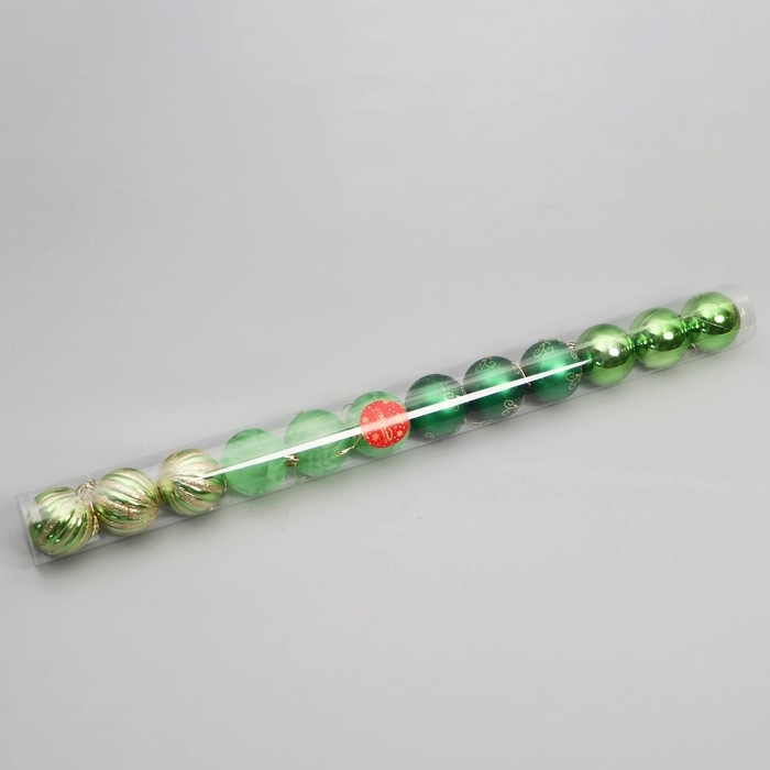 Набор шаров пластик d-6 см, 12 шт "Агнет" полосы, зелёный