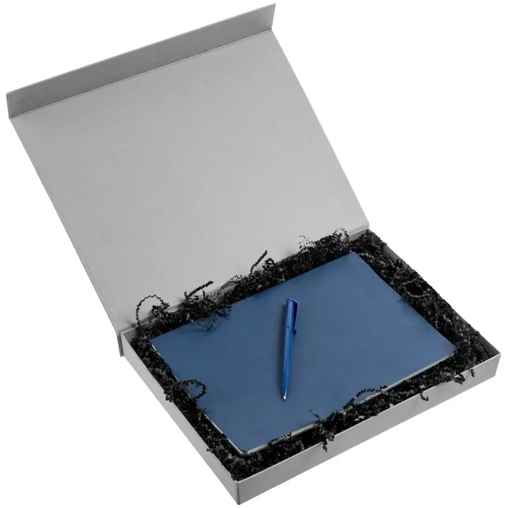 Коробка Silk с ложементом под ежедневник и ручку, ver. 2, синяя
